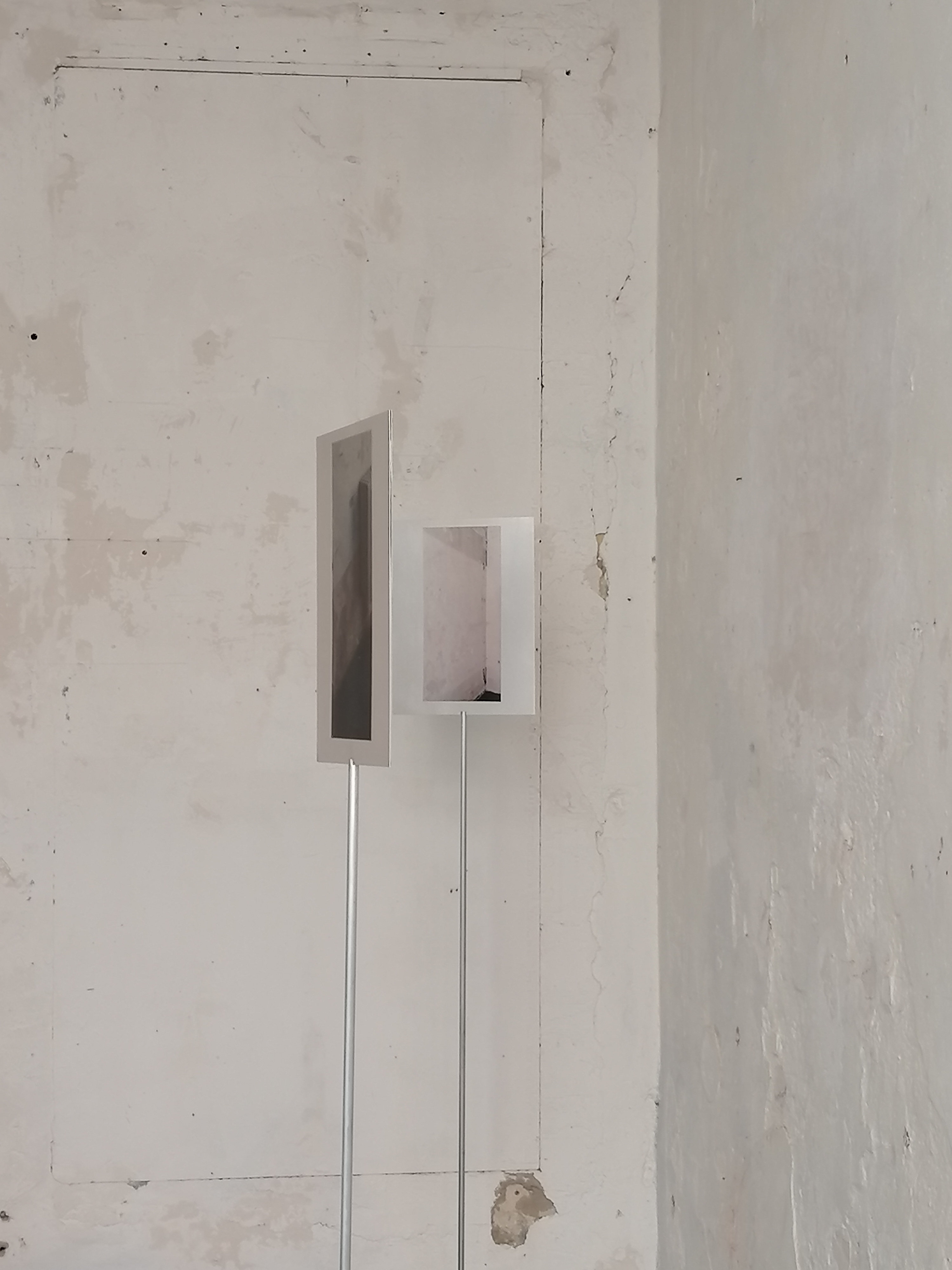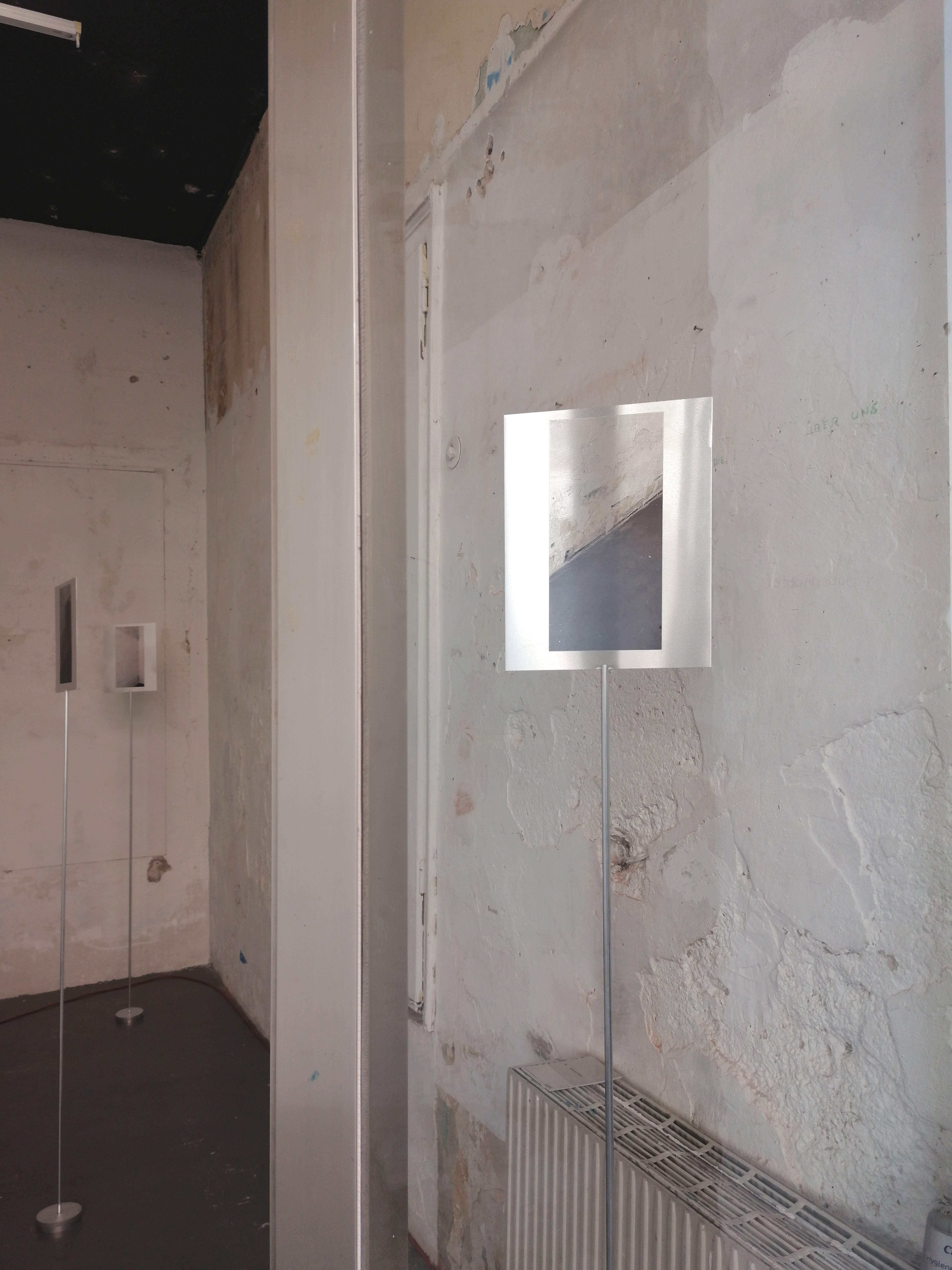 svkinštalácia v dočasnom výstavnom priestore na ulici Milchstraße v Mníchove. Fotografická séria tohto priestoru inštalovaná v priestore. O zmiznutí a štatúte hosťa.súčasť duo-výstavy "so yet so close" kurátorovanej kontingent kollektivséria fotografií, c-print na priehľadnej PVC fólii, hliníkové pláty, podstavce a tyč, rozmery variabilné