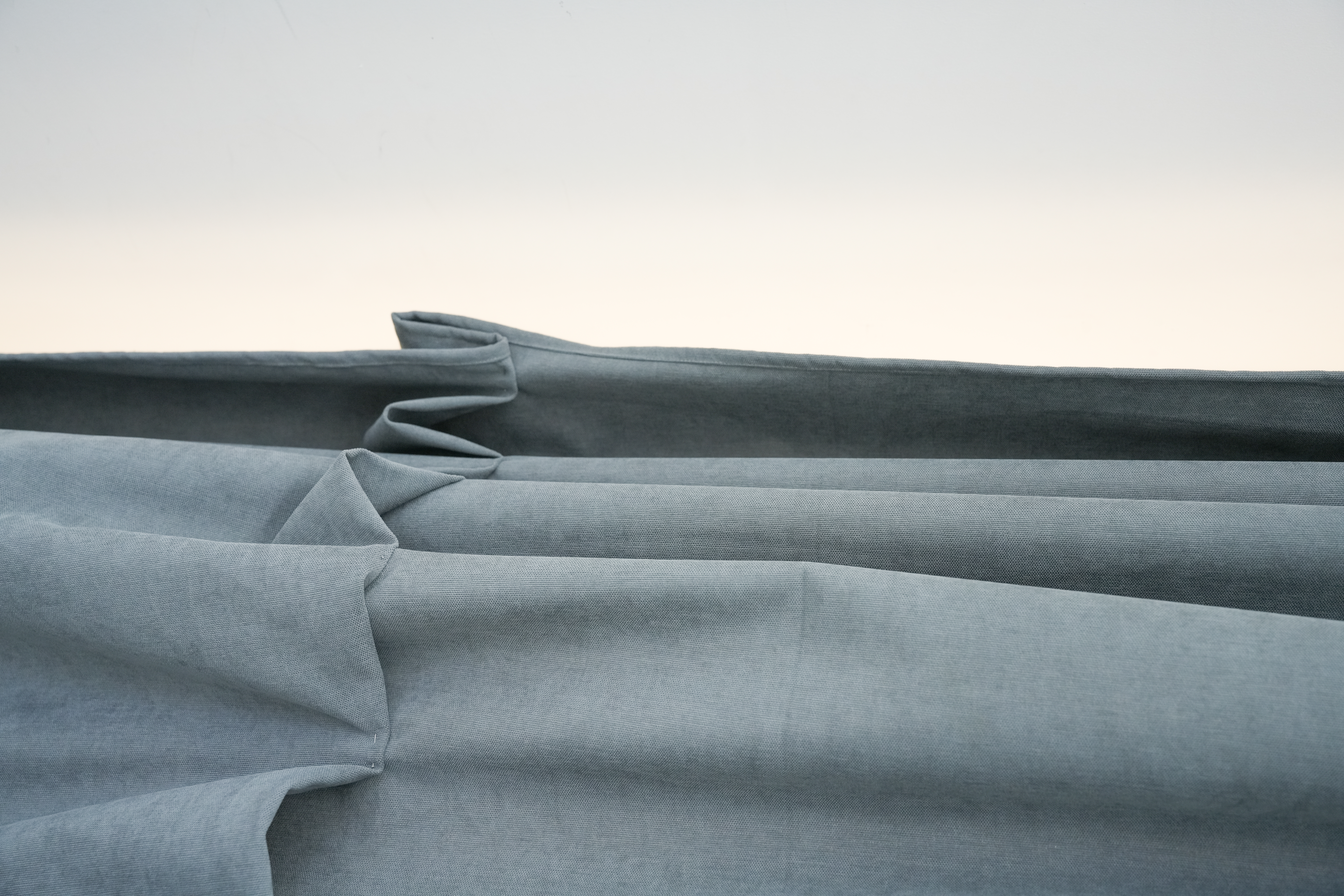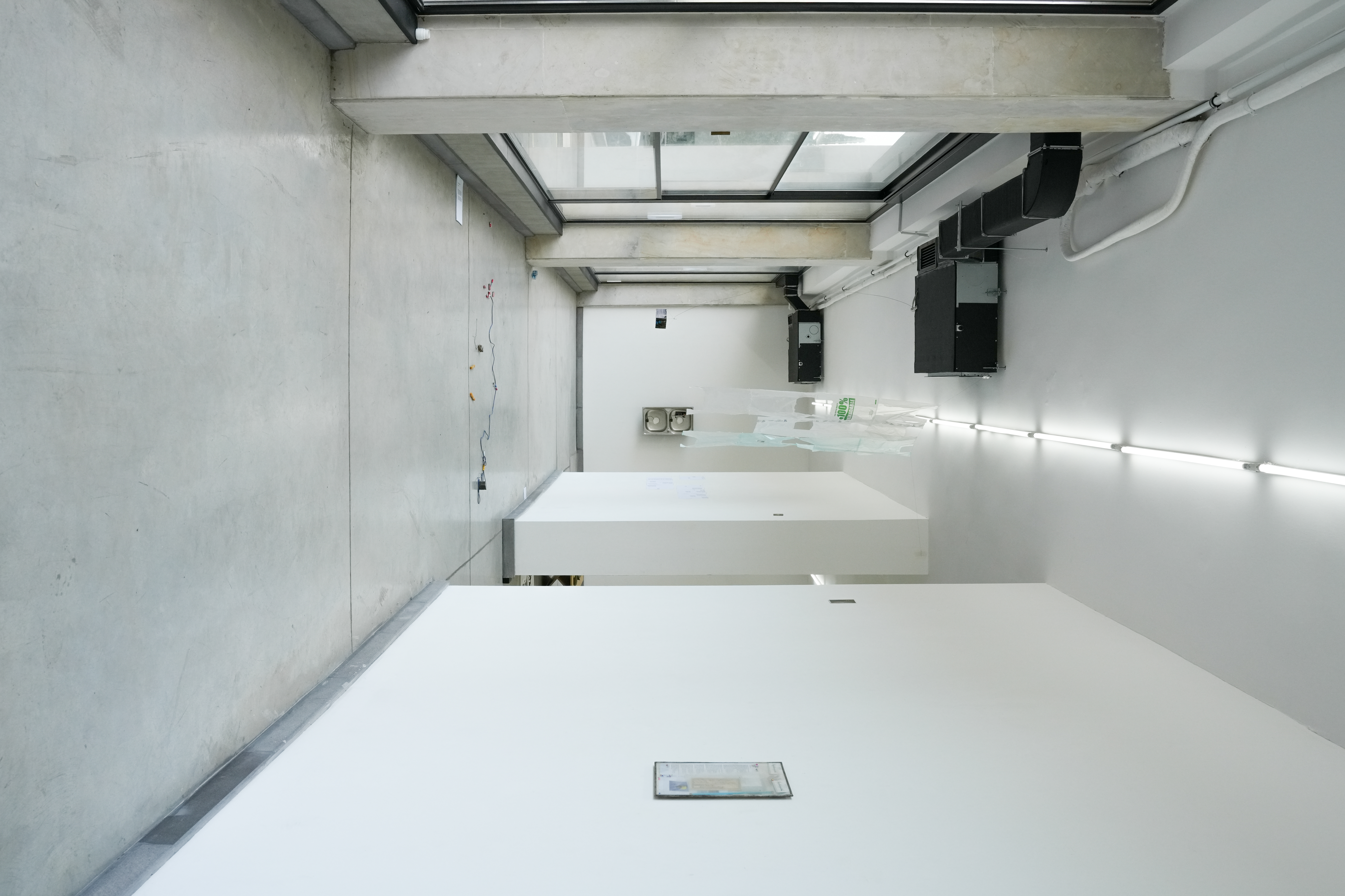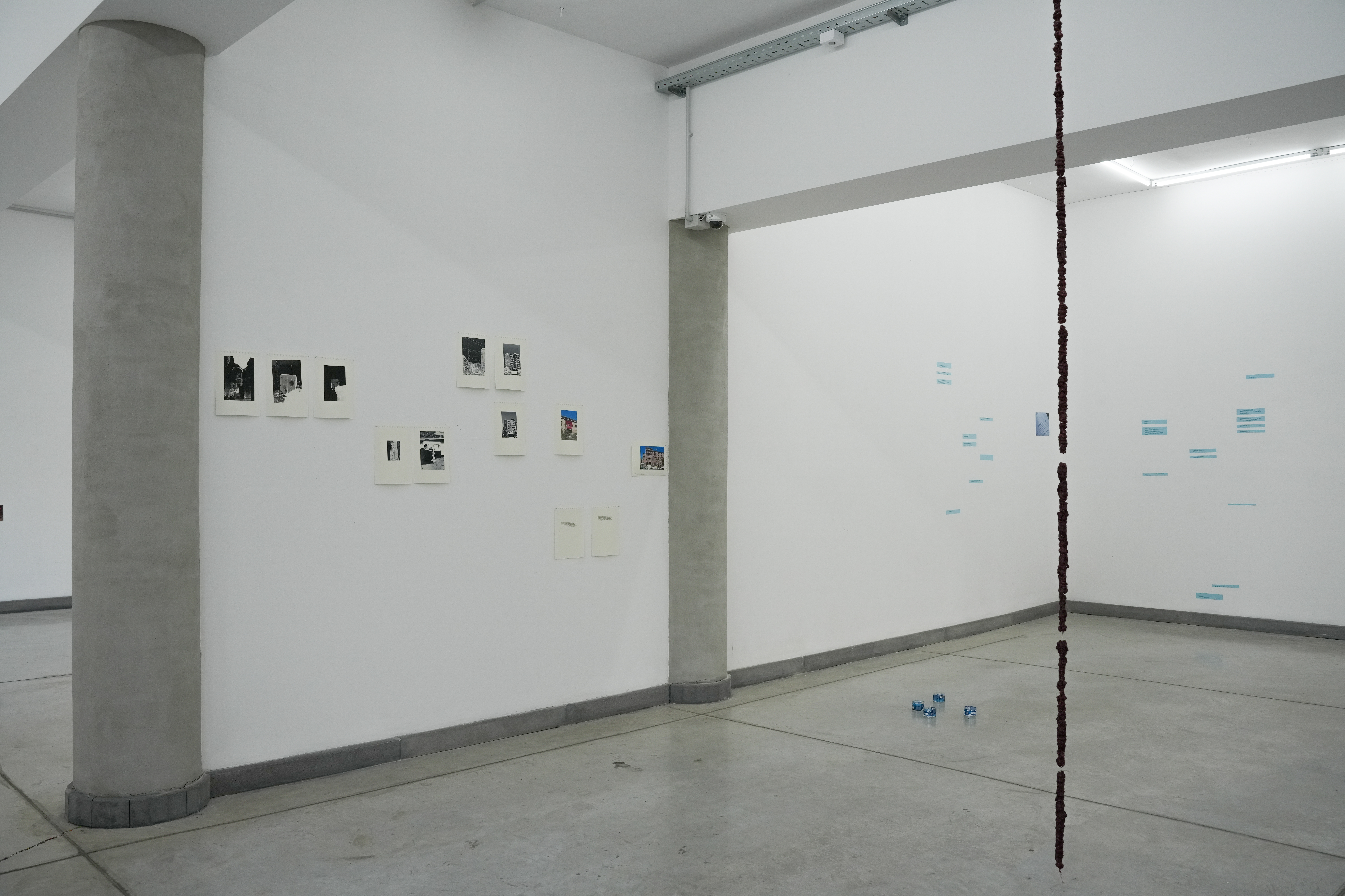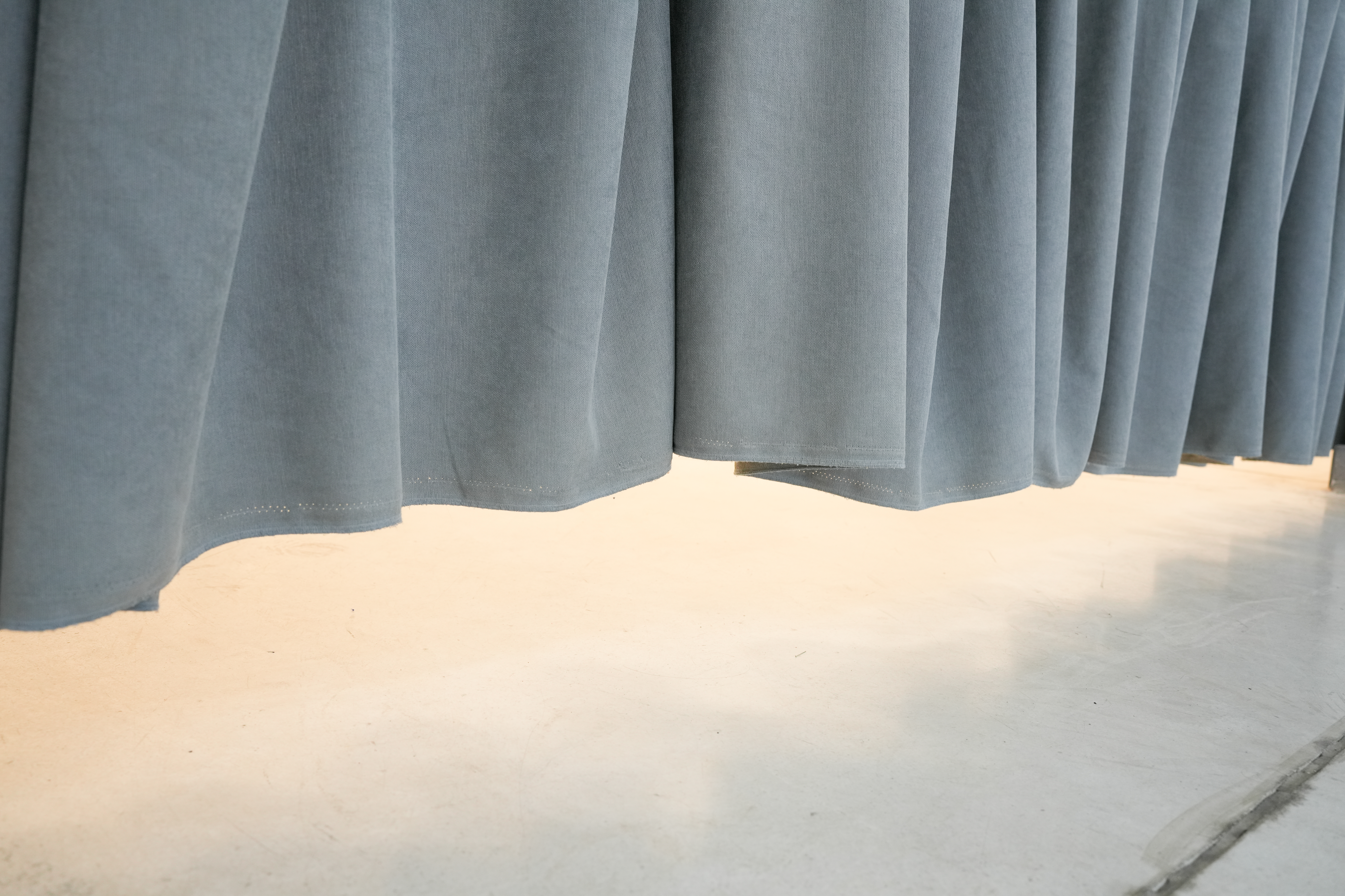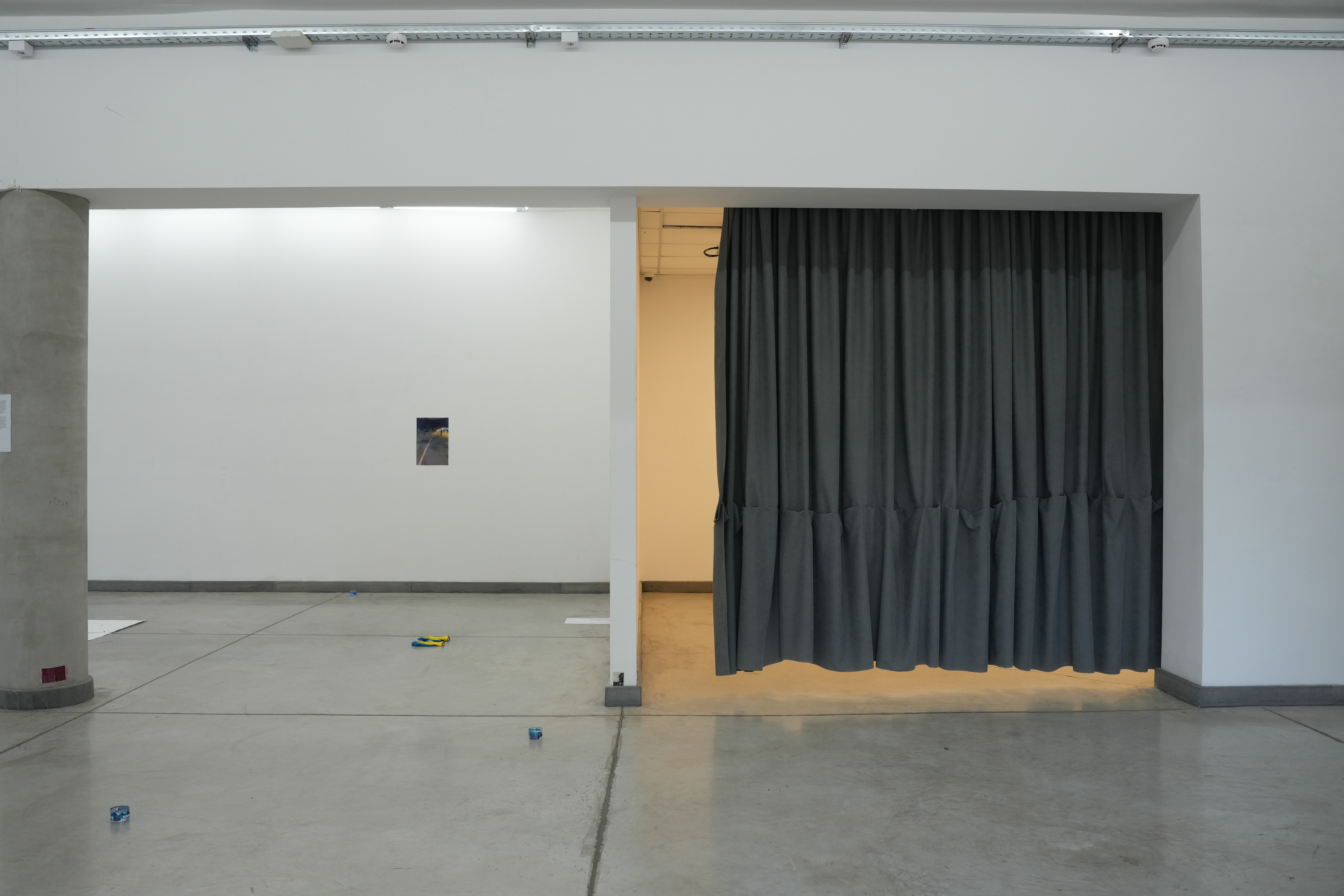 [2025]enad-hoc intervention in exhibition space of the Campus Gallery in Tbilisi. Shortening of the existing curtain to the level of the walls´ base. Modality of space in real-time.