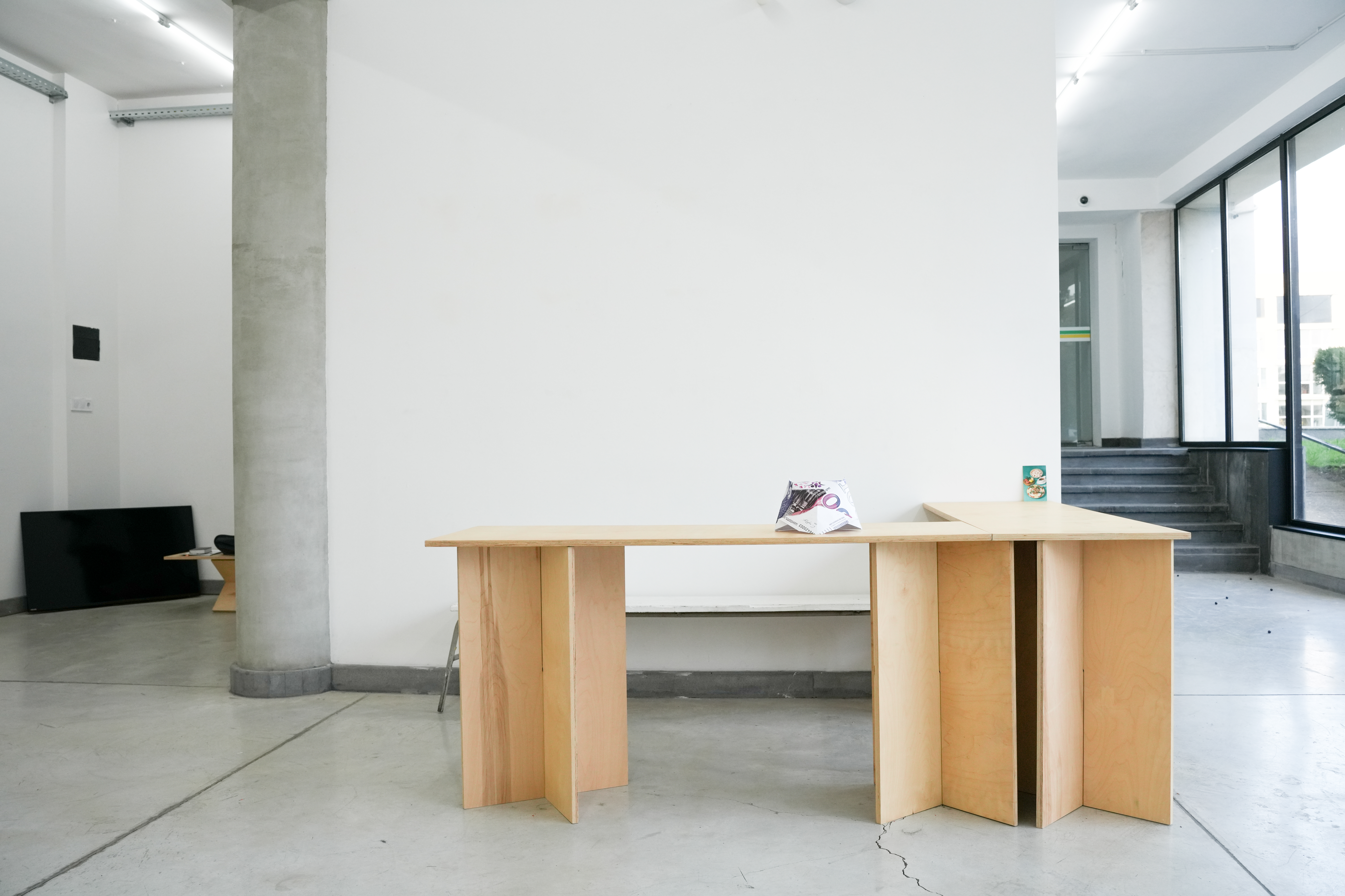 svkad-hoc intervencia vo výstavnom priestore Campus Gallery v Tbilisi. Skrátenie existujúceho závesu na úroveň soklu stien. Modalita priestoru v reálnom čase.