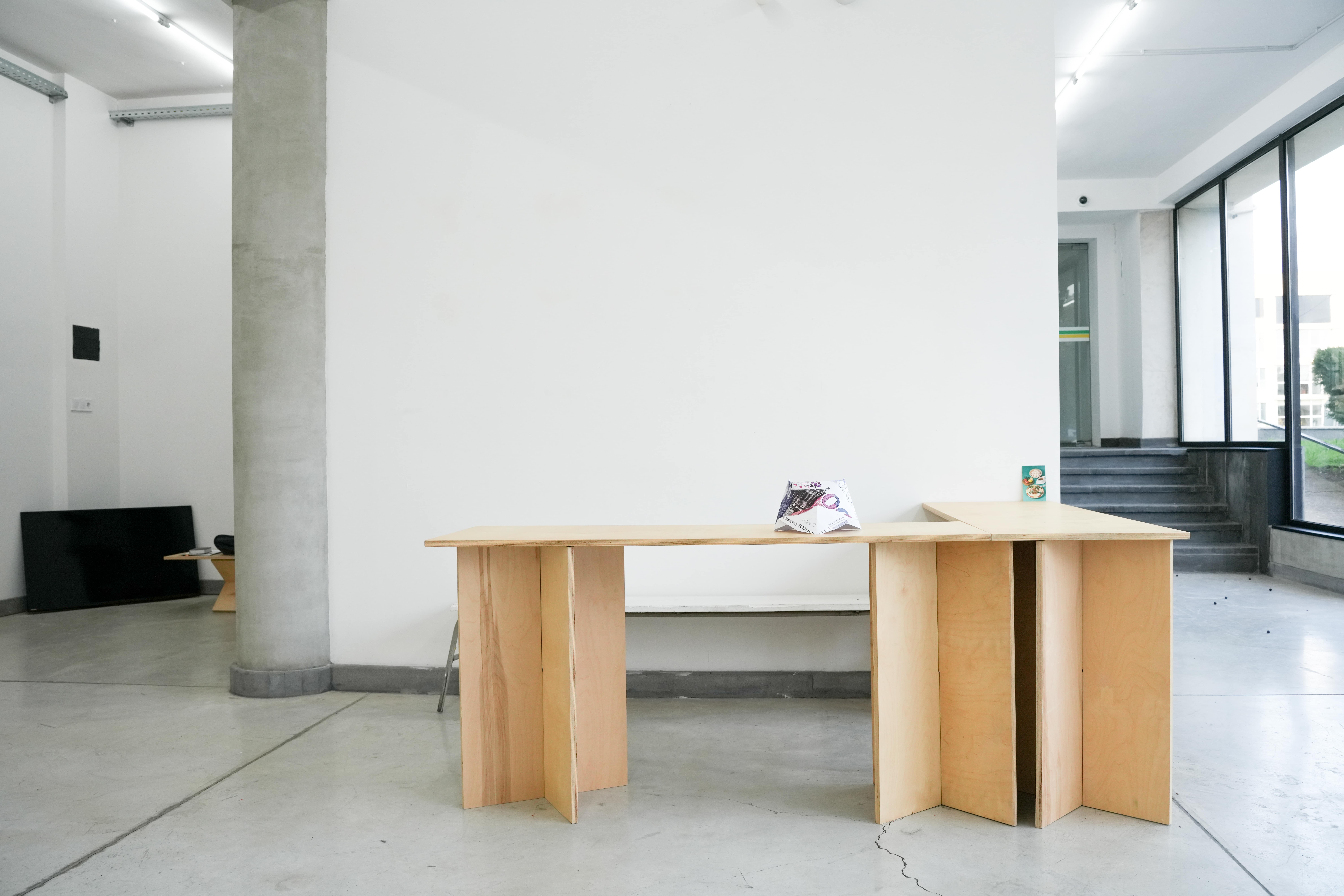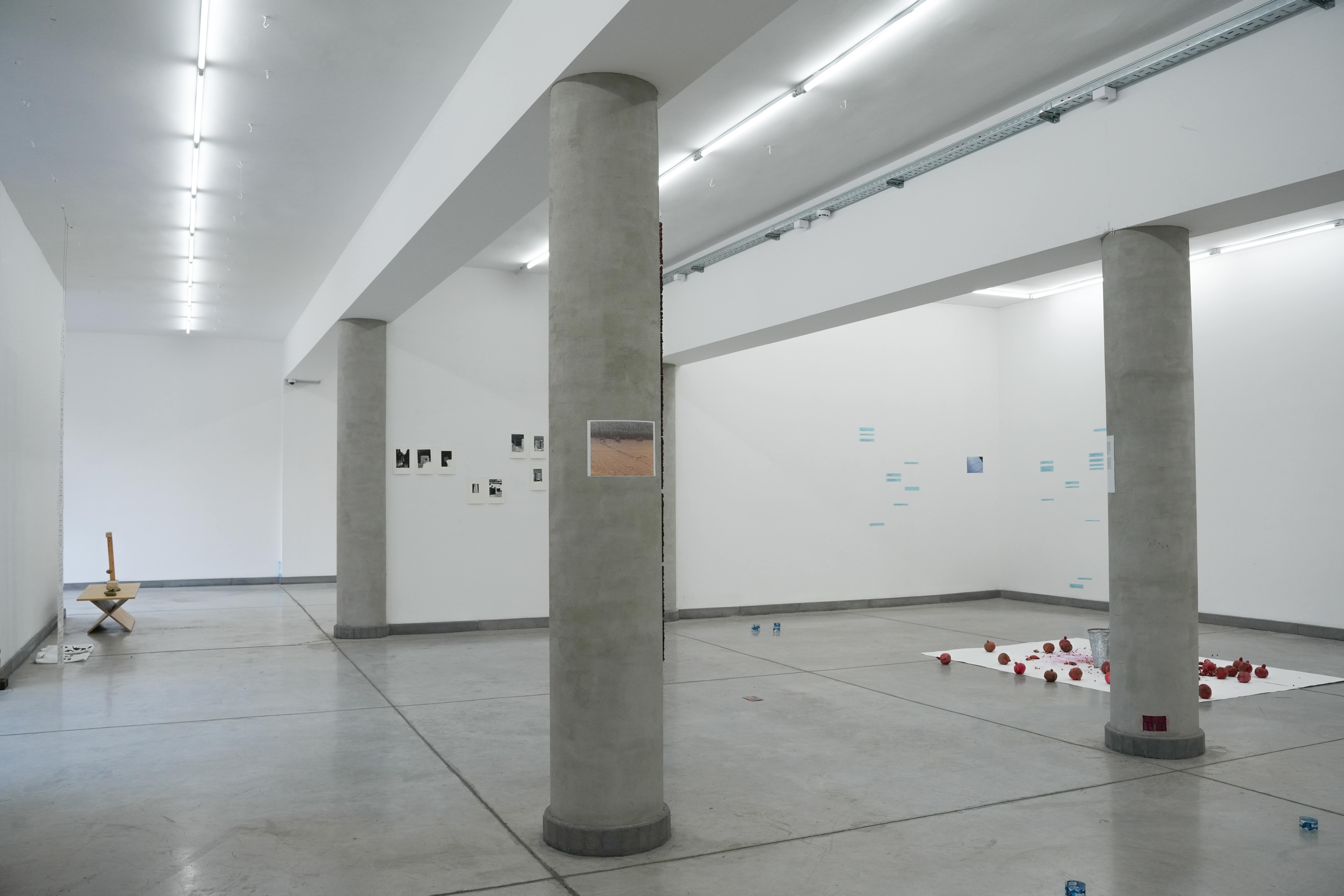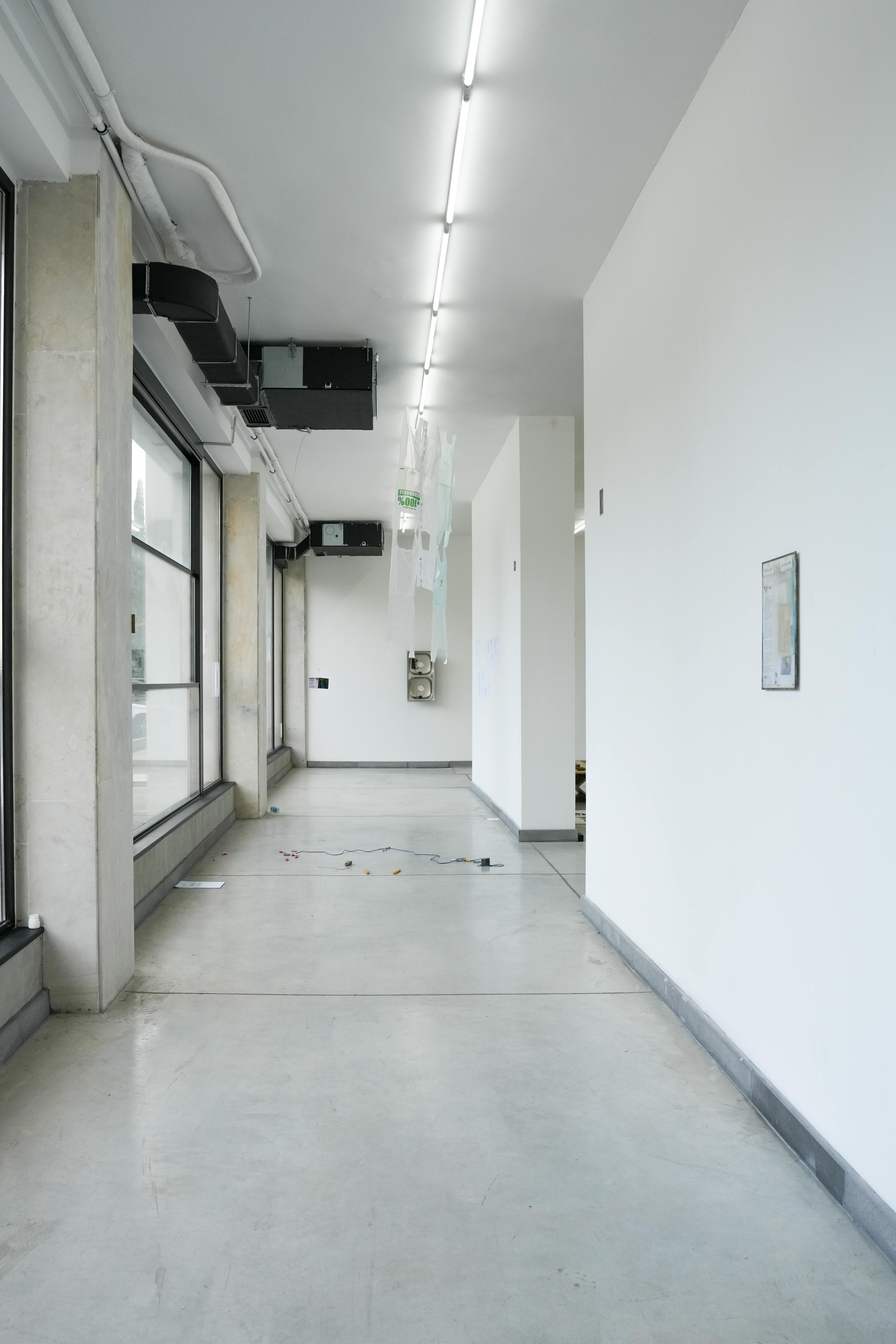 svkad-hoc intervencia vo výstavnom priestore Campus Gallery v Tbilisi. skrátenie existujúceho závesu na úroveň soklu stien a modalita priestoru v reálnom čase. záves, špendlíky, rozmery variabilné