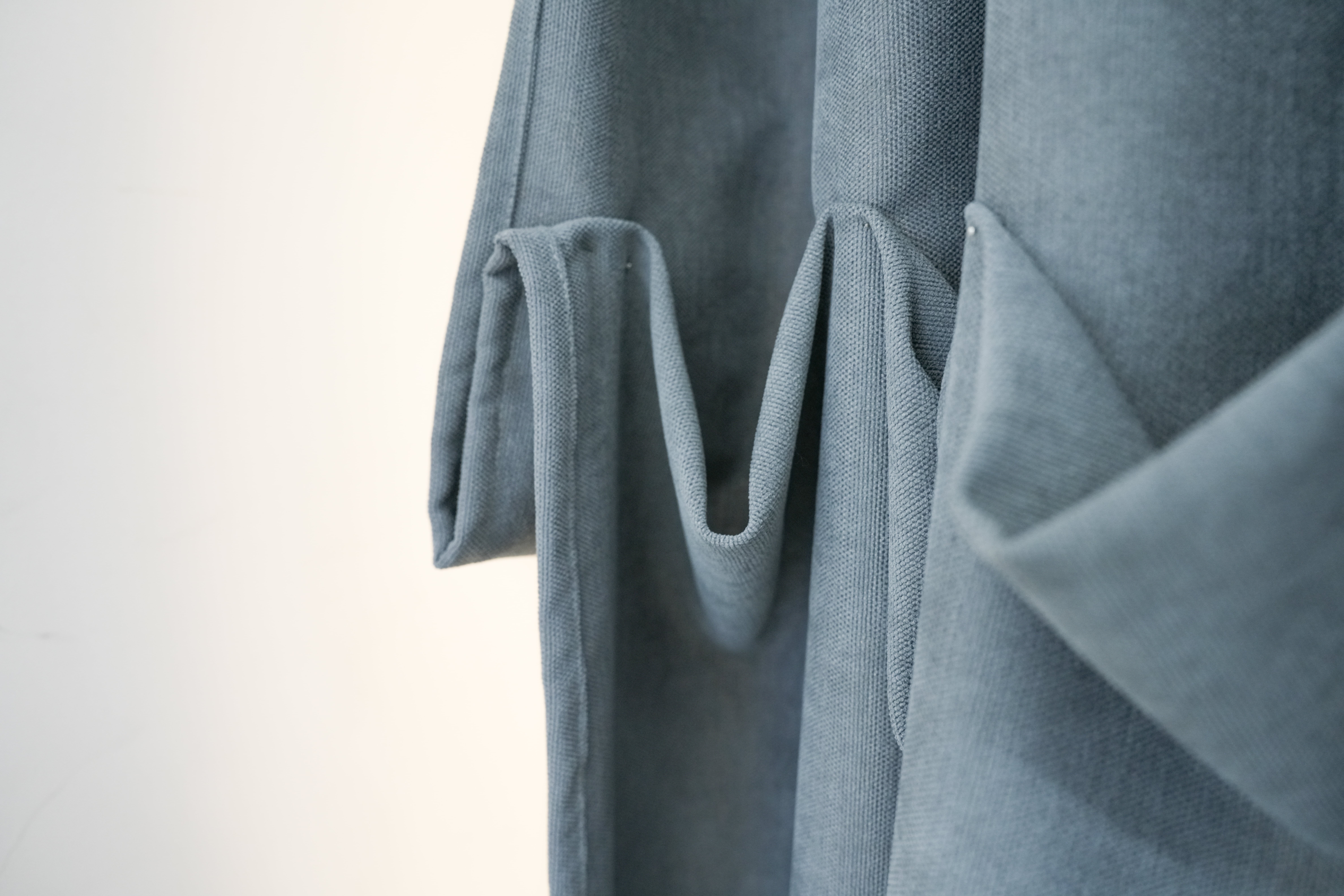 opona, špendlíky, zapnuté svetlá za oponou, rozmery variabilnéInštalácia: Campus Gallery, Tbilisi