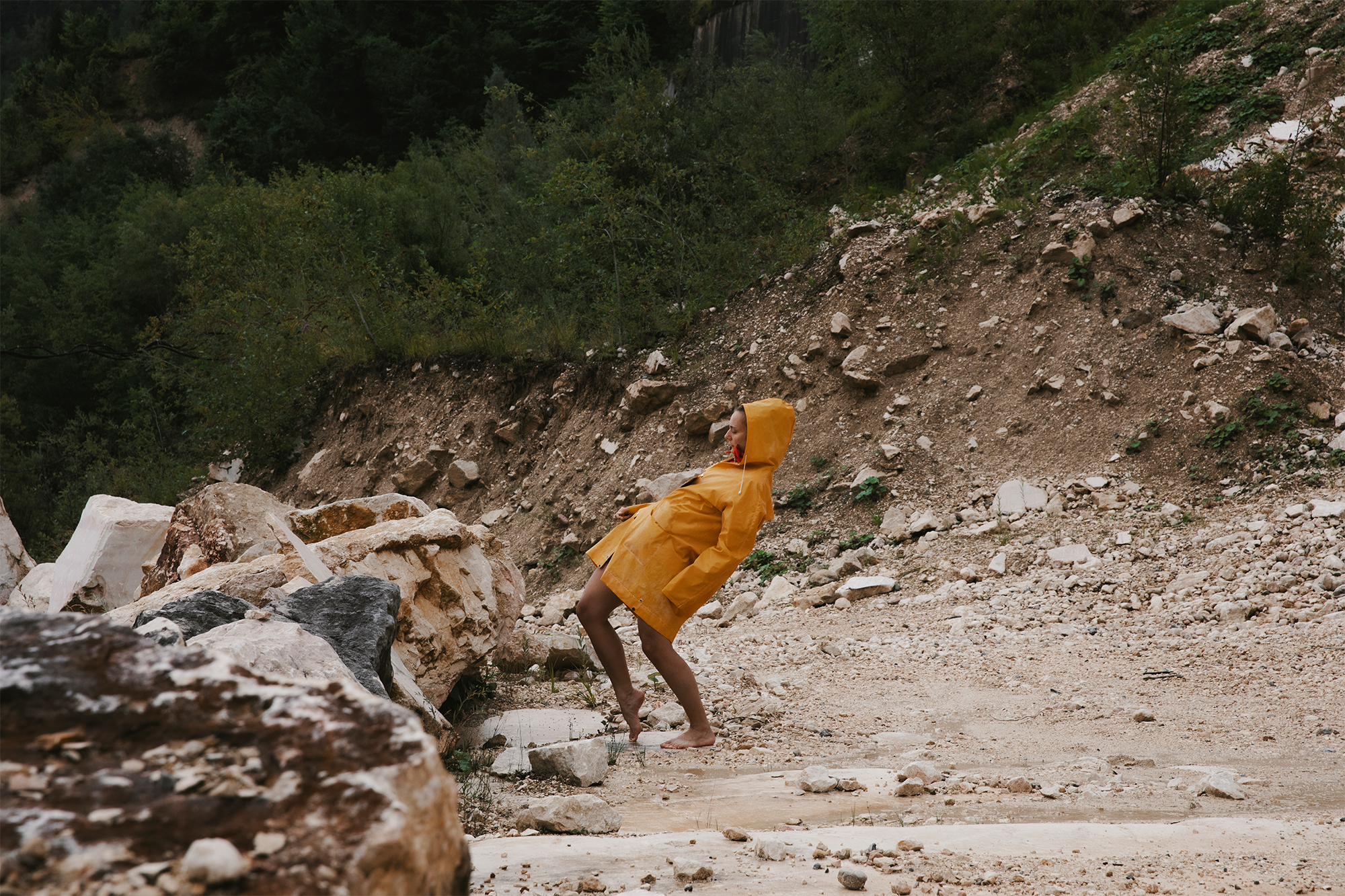deDie übrig gebliebenen Gesteinsbrocken aus einem aktiven Steinbruch in der Nähe von Salzburg fesselten mich durch ihre seltsame und große Ähnlichkeit mit menschlichem Fleisch. Ich fragte mich, ob diese in der Vergangenheit einmal irgendwelche Teile des menschlichen Körpers gebildet haben und ob diese einmal von den Menschen verlassen worden sind? Wenn ja, ist es jetzt möglich, herauszufinden, welche Stellen des menschlichen Körpers sie einst gebildet haben? Oder ob sie doch unseren Körper immer noch auf bestimmte Weise formen?Performance: International Summer Academy, Steinbruch Untersberg, SalzburgUnterstützt durch: Bayerisches Staatsministerium für Wissenschaft und Kunst, München