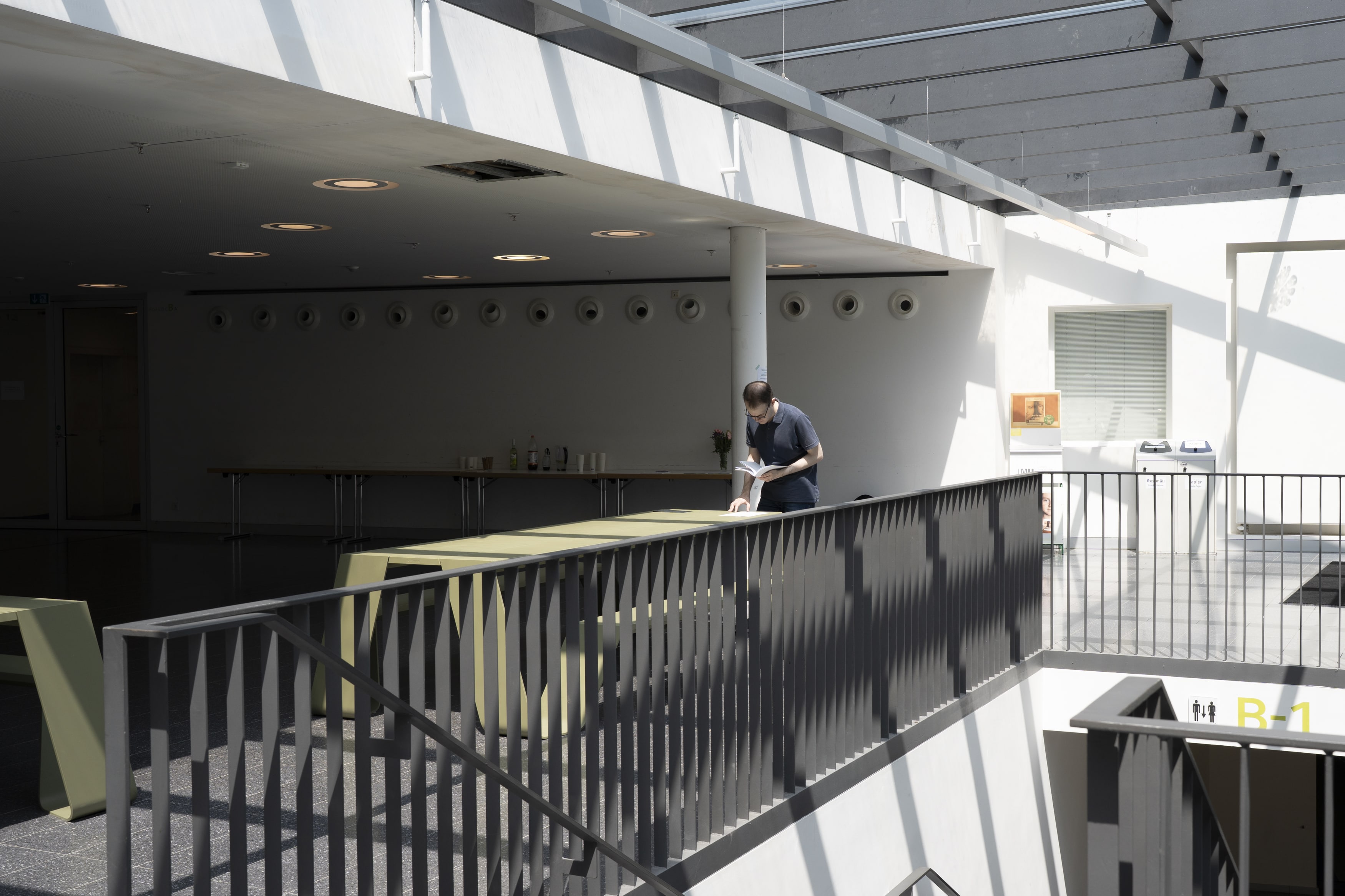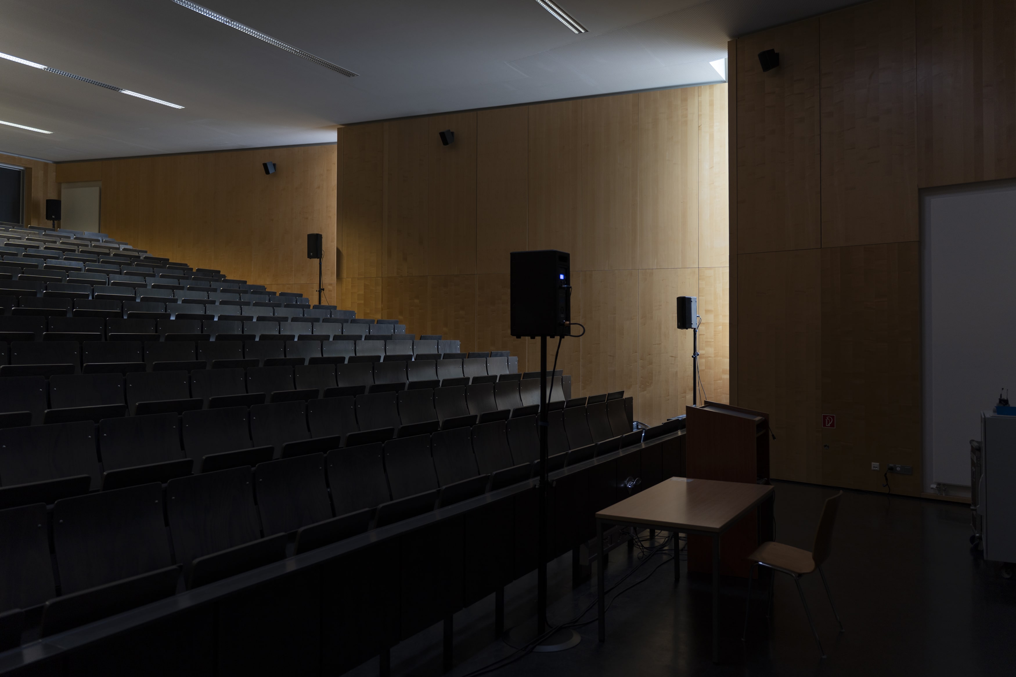 enDuring the Cold War, dissidents, artists turned reporters, professionals, and friends were given a platform to share comments, opinions, and news about what was missing from broadcasts in the former Eastern Bloc. Given their difficult position between two ideological powers, they essentially played a crucial role in establishing modern democratic principles in Eastern Europe. The station is perceived as such in the former East since then, and has been marked (for instance in former Czechoslovakia) as symbol of democracy. The intervention in the annex of this broadcasting site reflects the very first test phase as a moment of tension — between the democratic promise and the propagandistic reality of the station. ) vzkazy domů – grüße nach hause. imagines, through sound and translation, a speculative reunion with this testphase guided by the idea - what slips away is what defines.From July 7, 2025 until July 14, 2025 a publication in the foyer of the lecture hall presented first part of the sound-intervention — translations of Czech and Slovak transcribed messages from an early RFE broadcast of the Czechoslovak Unit — the programme “Vzkazy domů” (“Messages Home”; 1951 - 1953). Through Messages Home, refugees in former West sent warnings, reports, or personal (anonymized) greetings back home via the radio. These were retreived from the archives and now translated into German by myself, e.g. into a language learned later in life, through which I have sought an access — and commonalities — to the languages I chose to live in. The publication appeared very silently, just like the radio broadcast in 1950 — by placing the publications on the tables in the foyer of the annex of the former headquarters.On July 12, 2025, from 10:00 to 20:00, took place a 9h37min sound-installation in the lecture hall next to the foyer and strived to portray a display of a reality that has once been lost. Based on the rare jamming noises captured in the archival footage of Radio Free Europe broadcast, a body of vocal improvisations has been developed, which in turn created the training data for the sound-vector-space in the hall. Vocal improvisation to the jamming noise functioned in this manner as a carrier (vector) of information that has been deliberately lost in the past, yet formative of the present.Photography: Ludwig Neumayr